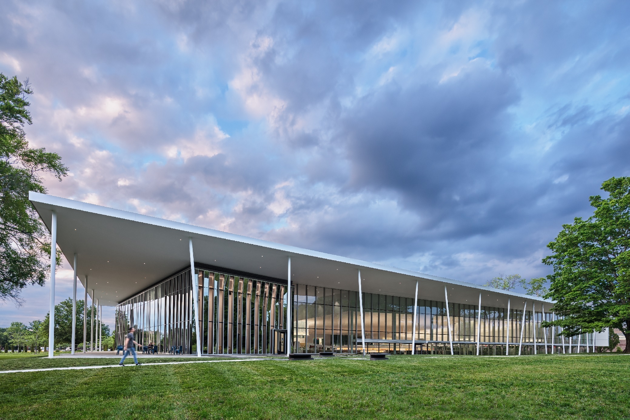 The building was conceived as a pavilion in the park, reintroducing patrons to an almost forgotten community landmark: the Civil War-era, National Register-designated Bellevoir home and grounds. This landmark home and its 13-acre formal lawn were protected during the development of the surrounding suburban office park, yet were effectively cut off from the public as tracts were developed to maximize street frontage and traffic efficiency. The design team sought to celebrate the site’s remarkable history by shaping itself as a deferential frame to this landscape, and directly linking the two buildings with a carefully choreographed network of walking paths.