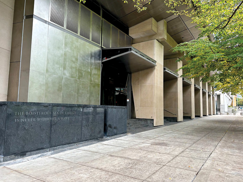 Both doors can be mounted to meet the clear opening required for the project, whether the door is mounted on the exterior of the building or recessed to be flush with the building. An exterior mount is standard for both door styles, meaning the door mounts to the face of the structure, and the door’s framework protrudes out 51 to 76 mm (two to three in.) from the face of the building, which is relatively unnoticeable. The other option is to recess the door flush with the building, a popular choice for new construction. When recessing either door, the space each door requires to maintain the clear opening needs to be accounted for.
