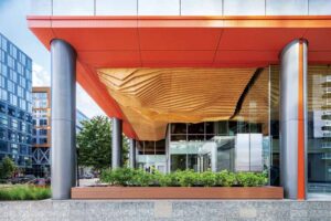 Given these innovations in finishing, aluminum is now an amazing replacement for many natural materials when cost, weight, or lead times are an issue. The spans can also be much greater in metal, meaning it can be easier to match the architect’s initial design intent.
