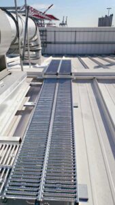 A well-installed roof walkway system reduces wear and tear on metal roof panels, a key concern for clients looking to protect their investment. The system distributes weight evenly, minimizing the risk of damage due to foot traffic. Another major selling point is safety. These systems provide an anti-slip surface, essential for reducing accidents in wet or icy conditions. Still another benefit is efficient navigation, as the walkways guide maintenance personnel safely around common rooftop obstacles such as skylights and HVAC equipment, increasing work efficiency.