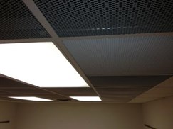 As in other installations, it is imperative that the tie-wires be tight and the grid-work level at this stage because the expanded metal tiles may be less rigid or lighter weight than similarly sized acoustical tiles. Once the installation is true and level, light fixtures, vents and the expanded metal tiles can be installed. Regarding tile installation, the only consideration to pay particular attention to is “orientation.”