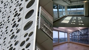 Dri-Design installed 15,211 square feet of its rainscreen aluminum wall panel system, which included tension-leveled, 0.08-inch perforated aluminum plate panels with dark bronze anodized and clear anodized aluminum finishes, and tensionleveled, 0.08-inch aluminum smooth plate wall panels with dark bronze anodized and clear anodized aluminum finishes. The 13,400-square-foot project was completed in March 2016.