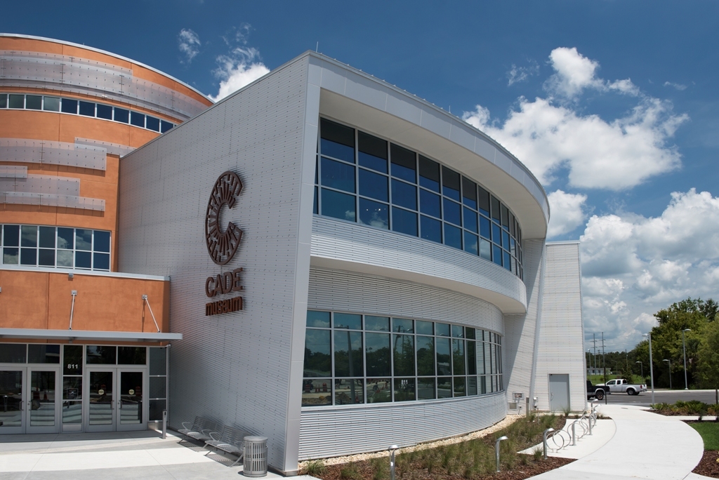 The museum’s floor plan and appearance were developed to support its use as a modern museum with community events, and pass-through building between a main roadway and public park. Its location in downtown Gainesville, Fla., at the northwest corner of a new park, Depot Park, lent itself to a facility that would accommodate dual entrances and high foot traffic.