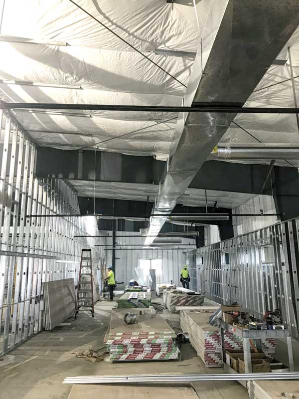 Jensen Hughes has previously written an engineering judgment for the use of this new continuity joint system in a Department of Corrections dormitory (Figure 6). As part of the project, multiple sleeping areas on the same floor were required to be separated by a one-hour, non-load-bearing fire-resistance-rated wall assembly. The top of the rated wall assemblies terminated at the underside of an unrated and fully insulated metal roof assembly supported by steel Z-purlins spaced at 1.52 m (5 ft) on center (Figure 7). Jensen Hughes was able to demonstrate via Section 104.11 of the IBC that the continuity joint system developed by the MBMA, as described here, met the intent of the code regarding Section 707.9 based on the fire testing conducted on the continuity joint system.