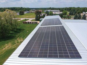 “Metal roofing is really the best substrate host product for solar panels,” says Gieseke. “One of the best things about metal roofing is, you are putting [solar panels] on a product that has a long lifespan. You do not have to take the solar off, replace a roof, and put the solar panels back on.”
