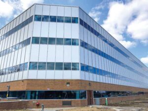 To help balance and complement a glass curtain wall system, insulated aluminum infill panels—sometimes referred to as glazing panels or glazing inserts—are often incorporated into the system. Insulated glazing panels can provide increased energy efficiency to the building while providing an improved aesthetic. The panels are most often square or rectangular in shape and designed to span the area between floors or walls, as well as used in storefront entrances and door systems.
