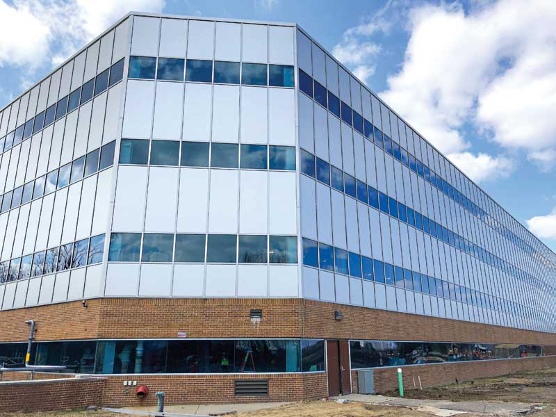 After insulated glazing panels started to gain popularity in different glazing systems, panels that provided different aesthetic or energy-saving options became desirable. This trend caused manufacturers to produce a wider variety of insulated glazing panel options. Examples include rabbeted edge panels, wrapped edge panels, and stepped edge panels. Rabbeted edge panels are designed to provide increased insulation on the panel’s interior face, where it is typically not visible. These types of panels are typically available in a 7- or 8-ply panel that can more than double the R-value depending on the overall thickness of the panel. Wrapped edge panels provide an edge treatment that allows for metal-to-metal, butt-glazed joints and create a clean, hairline joint appearance. They are used in applications where the opening in the curtainwall system exceeds the maximum panel size that is available, allowing panels to be installed next to each other. Stepped edge panels provide appealing aesthetics to the building by providing an adjustable reveal between the face of the mullion and the face of the panel. They can also provide a flush exterior aesthetic if desired.