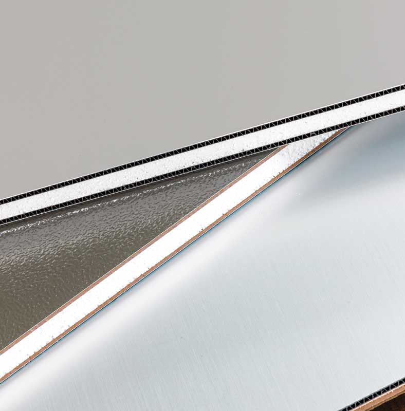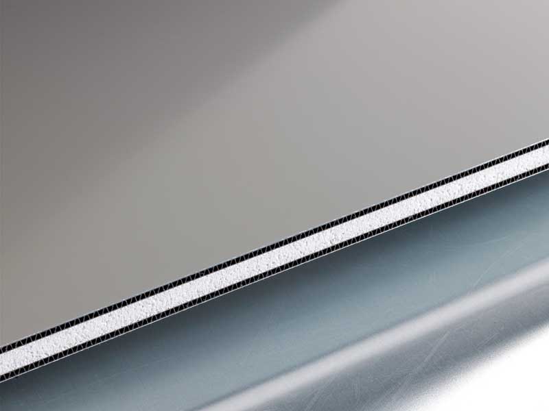 It is important to select a product that meets the specific requirements of the project. Stabilizers help to protect and strengthen the insulating core, and are often made of plastic, hardboard, or plywood. Infill panels made with plastic stabilizers are more lightweight and moisture-resistant than those made with hardboard or plywood. The aluminum skins used on glazing panels typically range in thickness from 0.33 to 0.812 mm (0.013 to 0.032 in.) depending on the manufacturer and color selected and are available in a smooth and/or stucco-embossed finish depending on the product. In many cases, custom colors are an option to match the desired color palette of the project or to accommodate corporate identity program requirements.