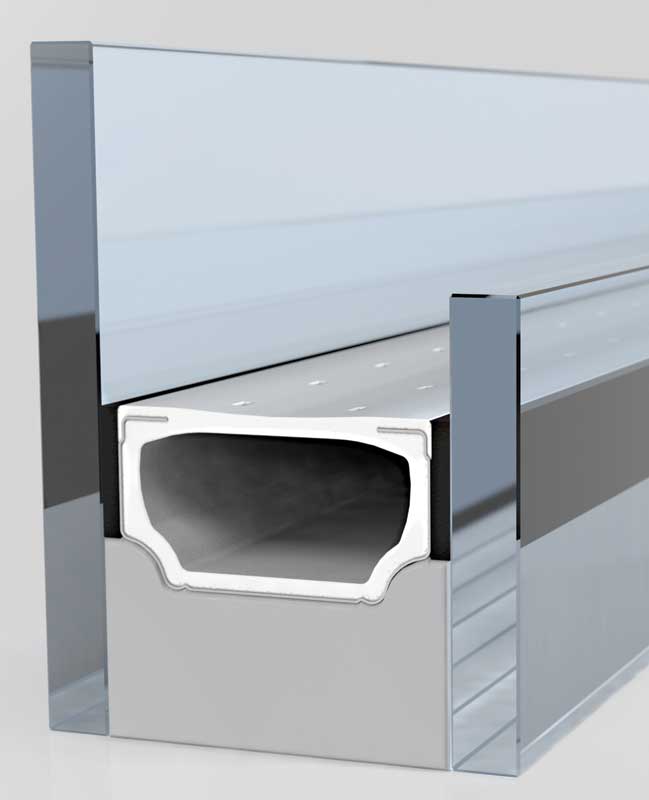 Several lower conductivity warm-edge options are available, including the industry standard plastic hybrid stainless steel (PHSS) box spacer, which delivers the same thermal performance as a non-metal spacer, with the benchmark durability of a metal box spacer. The engineered plastic bridging the top reduces heat flow across the cavity, while the low conductivity, thin stainless steel wrapping the back and sides provides an excellent vapor and gas barrier, plus an effective sealing surface.