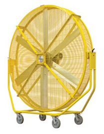 The AirGo, an 8-foot (2-m) diameter, precision engineered Big Ass Fan is designed to maneuver with ease on its four 8-inch (203-mm) Performa rubber tread wheels and provide an immediate air movement solution wherever it is needed. Easy-to-use, infinitely adjustable speed controls and well balanced, 360-degree angle adjustments allow AirGo to provide large volumes of non-disruptive air movement in any direction. Its versatility takes it to spaces where placement of a large diameter Big Ass Fan could be a challenge and it thus includes a series of interlocking safety features, OSHA compliant caging, and “safety yellow” powder coating for visibility and corrosion resistance. Big Ass Fans’ AirGo is easy to see and difficult to hear. In fact, AirGo can be seen-but rarely heard-indoors, on the sidelines at sporting events, in horse and cattle barns or in attendance at special occasions.
