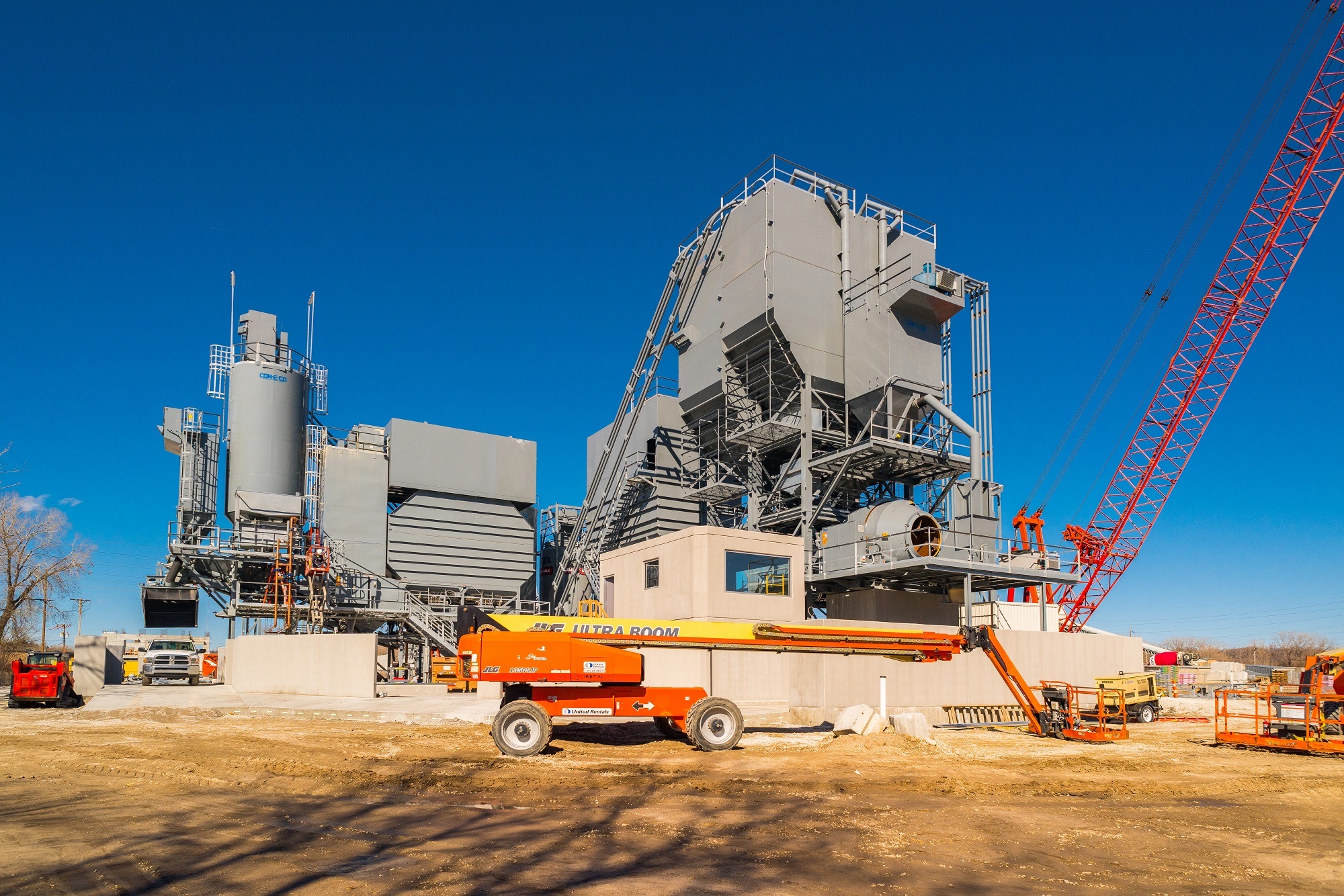 The 16,000-square-foot Geiger Ready Mix plant was completed in four phases. This building features a complex shape and a triple-sloped roof, and rises to an impressive 120 feet in height.