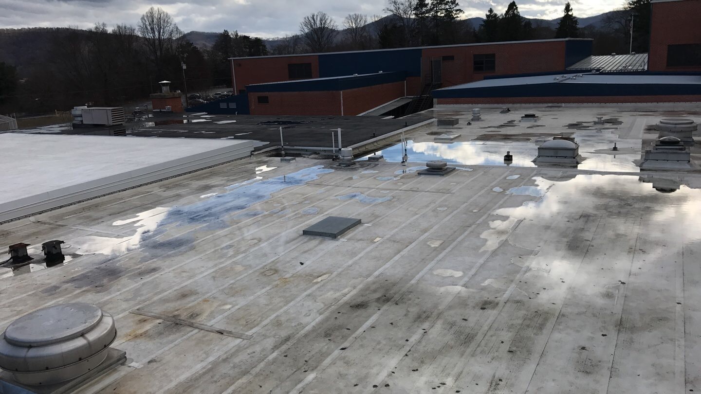 Over the last 50 years, the school market has used mainly flat roofing systems, starting with built-up roofs using layers of felt and hot asphalt to bind them together. Later came the single-ply roof systems, starting with EPDM in the 1970s and leading to the PVC, TPO and modified bitumen roofs during the ensuing years. These materials age at different rates due to UV rays, moisture and temperature fluctuations. These external atmospheric conditions cause the particular weathering membrane to start losing its elasticity and water prevention capabilities, making them more vulnerable to water traveling through these systems and into the interior of the school.