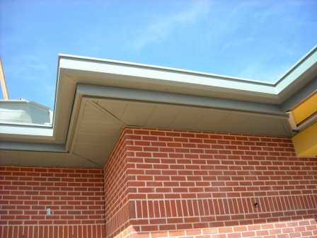 “All soffit panels systems require sheet metal flashing at the perimeter to trim the raw panel edges,” Barnard adds. “Fabricated trim can be purchased from some manufacturers, for some soffit panel profiles. For the most part, soffit panel trim is fabricated by the architectural sheet metal contractor, from matching prefinished flat stock provided by the manufacturer.”