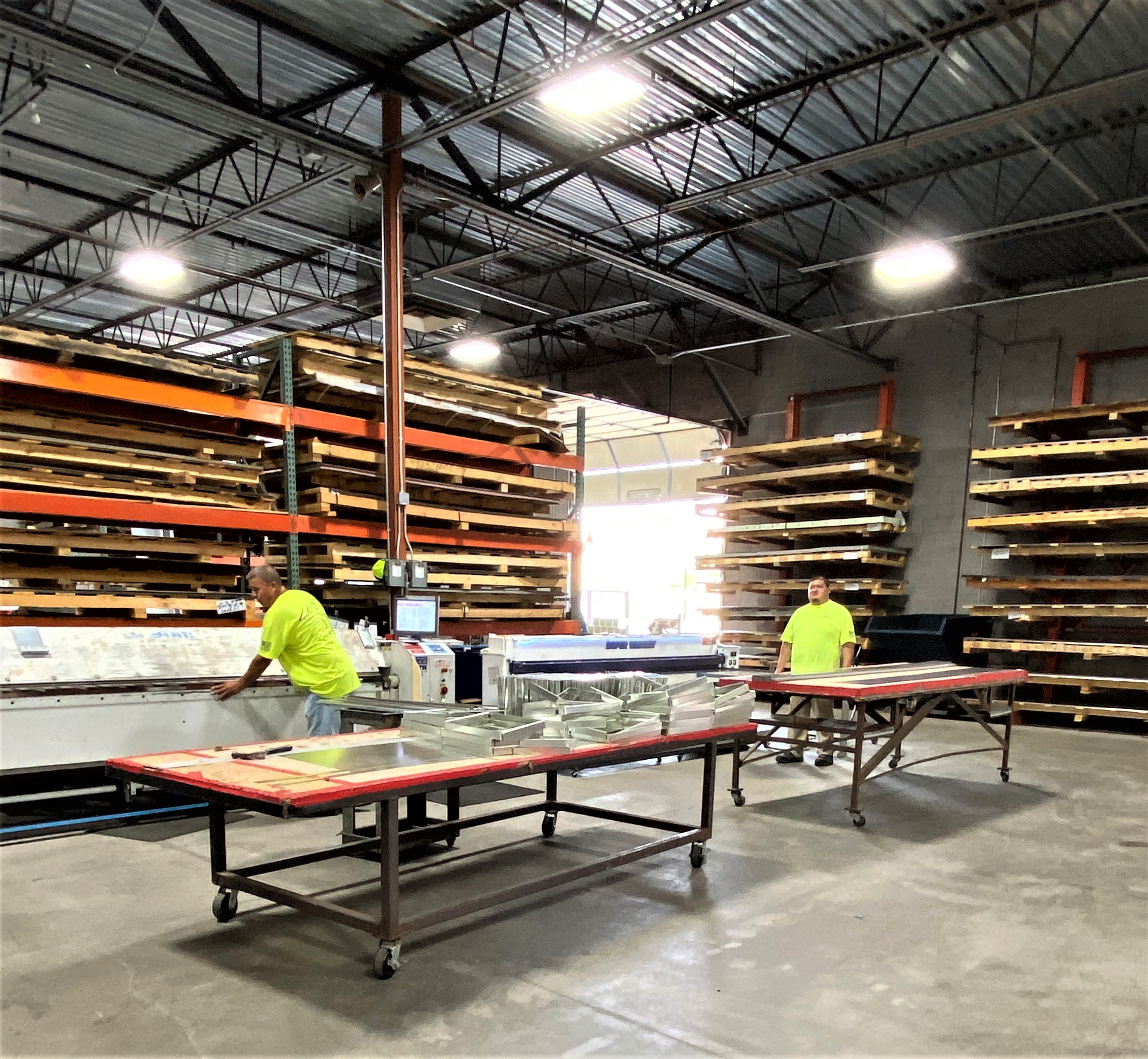 Francisco Casteel and David Villalobos fabricate custom sheet metal flashings in AARA’s shop in Gilbert, Ariz.