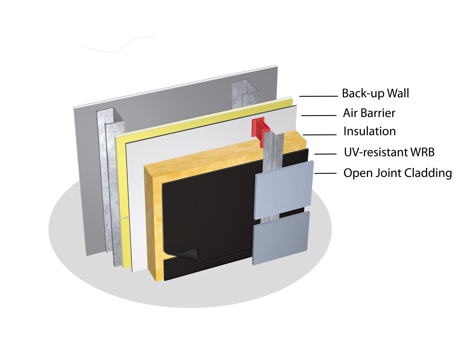 Further, the enhanced durability of open-joint metal cladding systems with air barriers and UV-resistant WRBs translates into reduced maintenance costs and an extended service life. Look for guide specifications that provide a complete system, integrate products into a full assembly that delivers high performance, and ensure compatibility among various manufacturers.