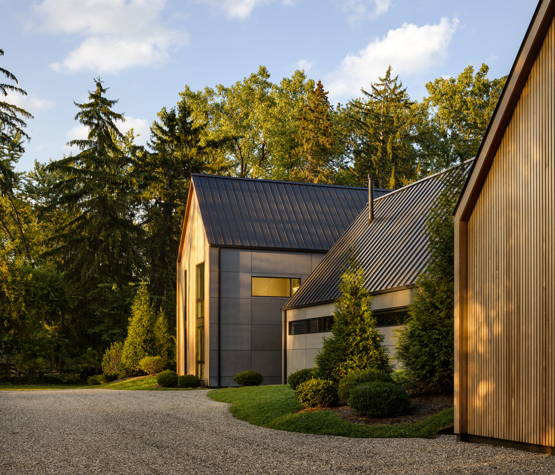 The heart of the residence lies in its metal roofing, which met requirements for minimal maintenance and enduring durability. Moreover, the standing metal roofing contributes to the aesthetics of the design, which are inspired by the iconic barns of the Midwest. The design pays homage to its rural roots while embracing modernity.