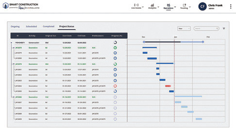 Task management view of project status displayed on the Zyter dashboard. (Photo courtesy of Rudolph Libbe Group)