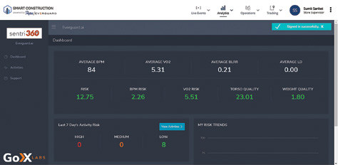 Dashboard showing current worker physiological and mechanical biometrics. (Photo courtesy of Rudolph Libbe Group)
