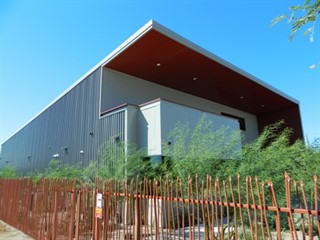 The building’s metal installer, Steadfast Structures Inc., Tucson, worked with the architect and owner to translate the design concept into a feasible pre-engineered metal building project. We, “Demonstrated the metal building insulation package’s envelope compliance to satisfy the permitting authorities, with the help of supplier, Therm-All Inc., [North Olmsted, Ohio],” says Elizabeth Tipton, operations manager, at Steadfast Structures. “The original color pallet for the building was all shades of white and gray. Our foreman was able to convince the owner to take a risk and use rustic red to highlight the 14- foot cantilevered soffit, wing wall and related trims.”