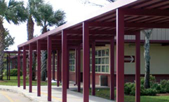 In recent years, Florida experienced rapid population growth resulting in growing school populations. The larger student bodies were accommodated by adding these portable classrooms. The aluminum covered walkways protect students going from class to class or to lunch from lightening, rain and sun exposure.