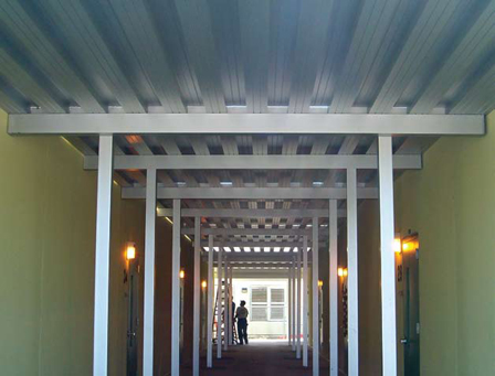 Partnering with Aluminum Solutions Group, Boca Raton, Walker Design & Construction developed a patented covered walkway system that was portable and could be moved to different campuses when there was a need. In Florida, due to changing demographics, it’s fairly common for a school to take on hundreds of extra students, necessitating portable classrooms.