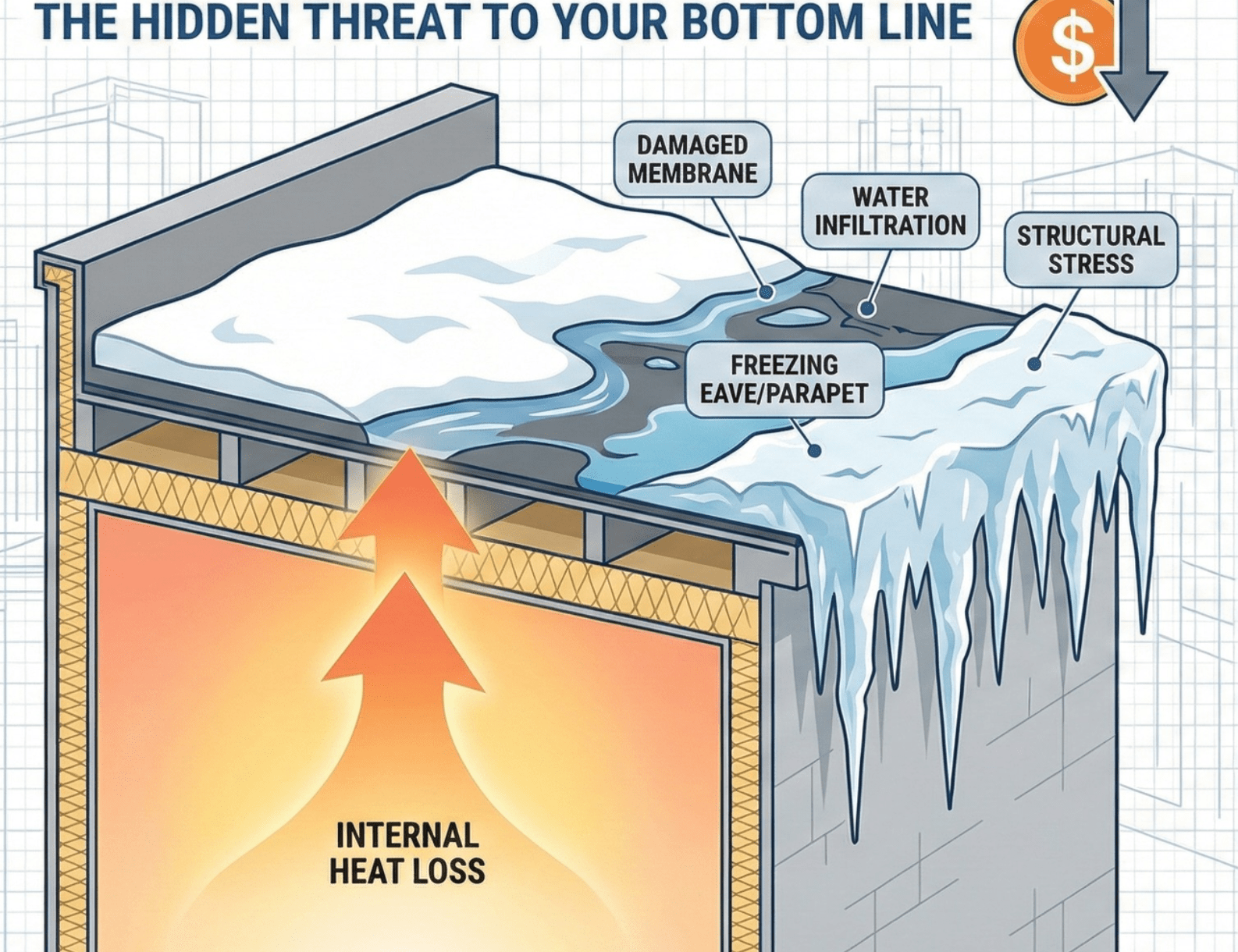 For an industrial tenant or owner, the cost of an ice dam extends far beyond the price of a roof patch. It attacks the net operating income (NOI) of the facility in four specific ways: