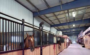 Metal ropes together distribution business, horse hobby: A veterinary supply company and an equestrian facility were brought together with a wide-span structural system