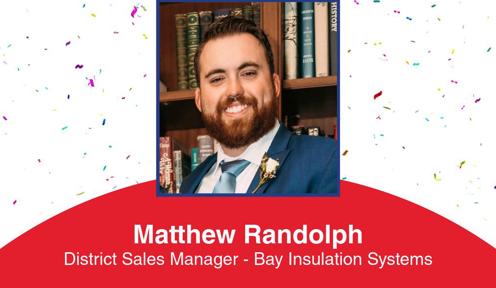 Bay Insulation Systems has added Matthew Randolph as district sales manager, serving Virginia, West Virginia, and portions of western Maryland.