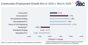 “Industry-wide employment has expanded by an average of 19,300 jobs per month in 2026,” noted ABC chief economist Anirban Basu. “That’s a marked improvement from 2025, when construction employment actually declined, but there remains cause for concern about the industry’s outlook.”