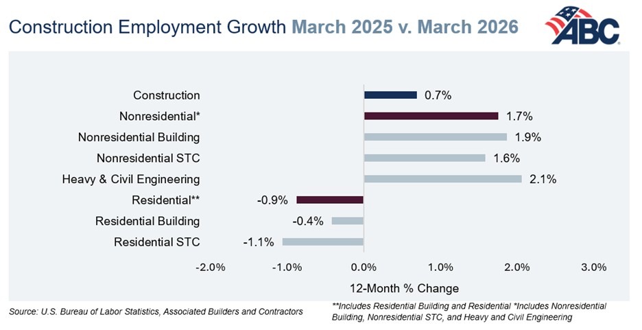 The construction industry added 26,000 jobs in March 2026, according to an Associated Builders and Contractors analysis of data released by the U.S. Bureau of Labor Statistics.
