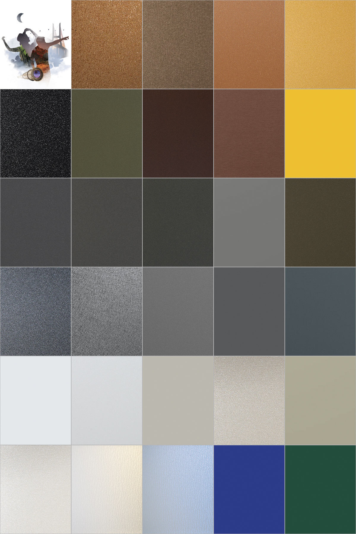 THE CLASSIC COLLECTION. Color plays an integral role in the architectural environment; the timeless palette in our Classic Collection reflects your passion for what’s possible. From classic neutrals to biophilic hues, this line offers a wide range of options to help you give shape to great ideas. New Wanderlust finishes include: Anthracite Silver Metallic, Atacama Bronze Metallic, Beachstone Gray Metallic, Beige, Black Metallic, Botanical, Epernay Champagne Metallic, Graphite Mica, Greyhound, New-Age Dark Bronze Mica, Magnolia, Market Pearl White Mica, Steel Silver City Mica, Tuscan Sun and Ultramarine Blue.