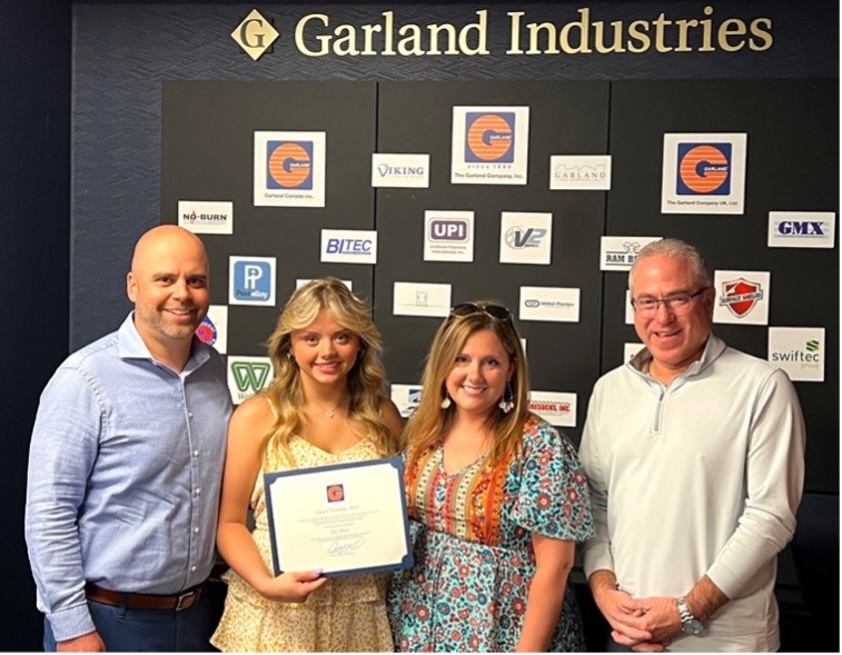 The Garland Co. Inc. announced that Lily Hebert is the recipient of the 2023 Garland Scholarship. Hebert, daughter of Garland employee-owner Jay Hebert, recently graduated from North Ridgeville High School in North Ridgeville, Ohio, and will begin her studies at Fordham University in New York City, majoring in biology and pre-med.