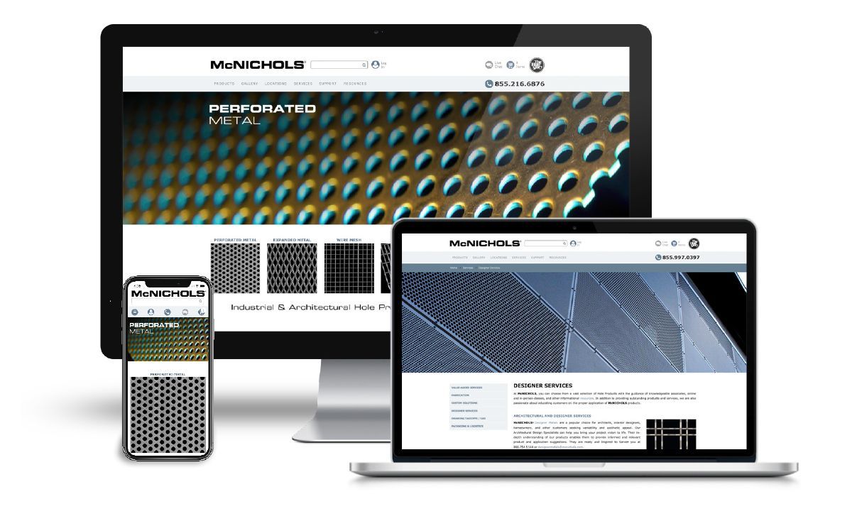 As North America’s leading supplier and fabricator of Perforated Metal, Expanded Metal, Wire Mesh, Designer Metals, Gratings and Flooring Products, McNICHOLS is an industry leader when it comes to technology. Having launched its first website in 1996, including several redesigns over the years, the new mcnichols.com is a “HOLE” new online experience and starts another chapter in The Hole Story®.