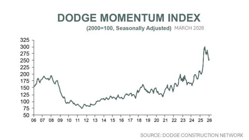 Planning momentum in March 2026 was powered almost entirely by data center projects, said Sarah Martin, associate director of forecasting at Dodge Construction Network.