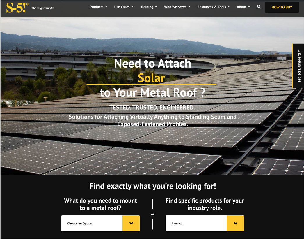 Helps customers design their projects from start to finish and guide them to find the right clamp, bracket and/or system for the specific roof profile. A project dashboard allows users to log and save all project data, add multiple roof profiles, view all projects and offers advanced filters via multiple categories. The Project Configurator Tool is linked to S-5!’s snow retention calculator. (And, our new solar calculator is coming soon.)