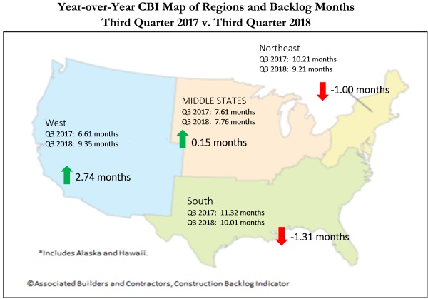 Associated Builders and Contractors reports that its Construction Backlog Indicator contracted to 9.04 months during the third quarter of 2018, down 8.4 percent from the second quarter and 4.3 percent lower than the same time last year.