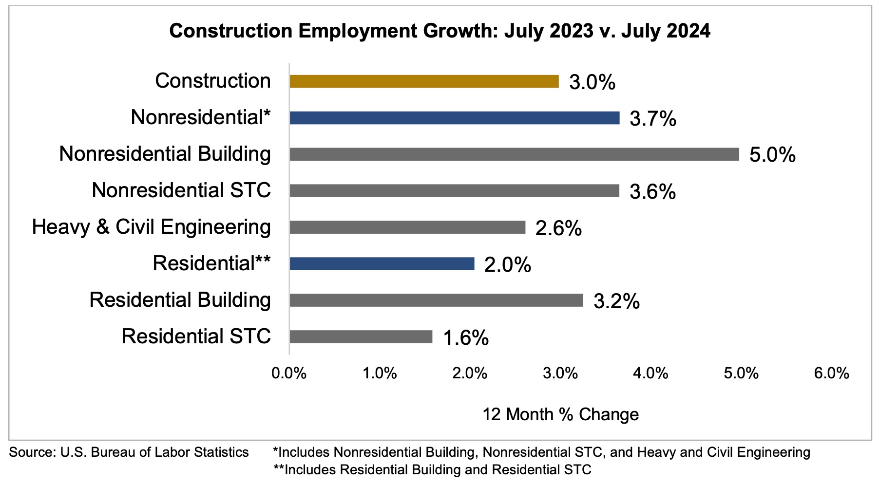 The construction industry added 25,000 jobs in July, according to an Associated Builders and Contractors (ABC) analysis of data released today by the U.S. Bureau of Labor Statistics. On a year-over-year basis, industry employment has expanded by 239,000 jobs, an increase of 3 percent.