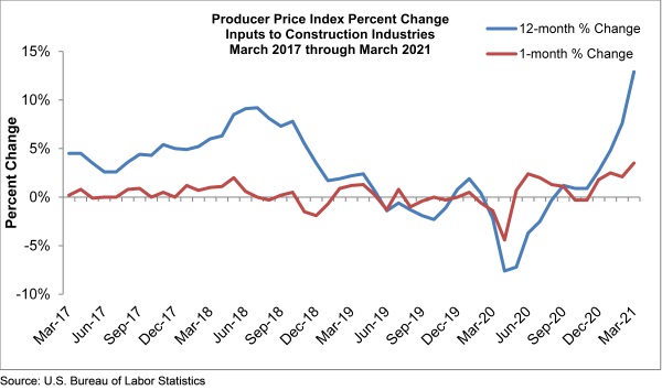 Construction input prices rose 3.5% in March 2021, according to an Associated Builders and Contractors analysis of U.S. Bureau of Labor Statistics’ Producer Price Index data released today. Nonresidential construction input prices also increased 3.5% for the month.