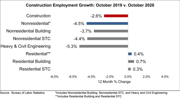 “While October’s employment report surprised to the upside, contractors should remain on guard,” said Basu. “Cash management will be particularly important going forward. Another recession is possible as COVID-19 rages across the nation, driving up hospitalizations. While household spending will continue to be a source of positive momentum, state-mandated economic lockdowns are likely to become more of a factor during the weeks ahead. That would result in an interruption to the robust recovery that has been building since May, and would delay the arrival of nonresidential construction’s complete recovery.”