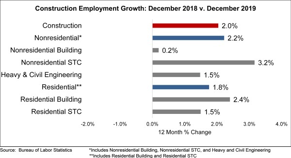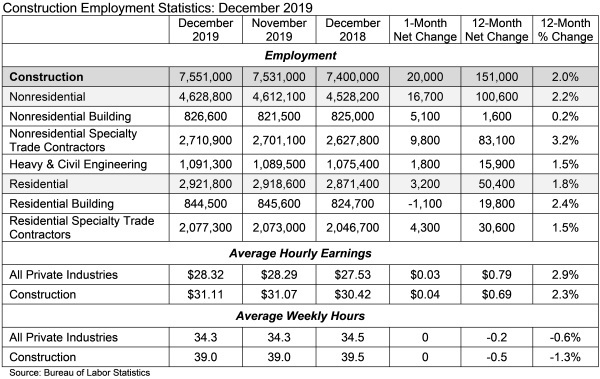 The construction industry added 20,000 new jobs in December, according to an Associated Builders and Contractors (ABC) analysis of data released by the U.S. Bureau of Labor Statistics. On a year-over-year basis, industry employment has expanded by 151,000 jobs, an increase of 2%.
