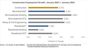 “The construction unemployment rate stood at 6.9 percent for the month, which is tied for the third lowest January rate on record,” says Basu. “As a result of labor scarcity, construction wages surged in January, increasing at the fastest rate since July 2023. With both the construction industry and the broader economy continuing to grow at a rapid pace, contractors will struggle to remain adequately staffed over the coming quarters, especially with a majority of contractors intending to increase their staffing levels over the next six months, according to ABC’s Construction Confidence Index.”
