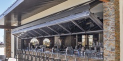 Midland Door Solutions’ architectural bi-fold doors are custom designed doors with steel construction, an electric operation system and optional safety switches. They can be as large as 90 feet wide and 20 feet tall. Doors are finished with a variety of materials including frosted and etched glass, cedar siding and aluminum.