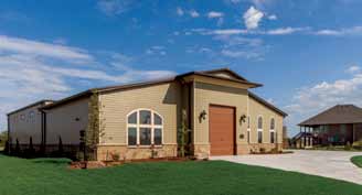 Benton, Kan., is an 8,000-square-foot, 80- by 100-foot metal building. The hangar is attached to a 4,000-squarefoot home. Behlen Building Systems, Columbus, Neb., supplied its Behlen ADP-1 screw down pitch gabled roof in Patrician Bronze with a 4:12 pitch and a 60-foot single slope off the house. Behlen also supplied ADP-2 wall panel system in Surrey Beige and Watertown, S.D.-based Enercept provided its Structural Insulated Panels (SIPS). The hangar also features a 60- by 16-foot hydraulic hangar door from PowerLift, Lake Benton, Minn. In addition to the hangar, the building also contains a shop, RV storage area and four car garage.