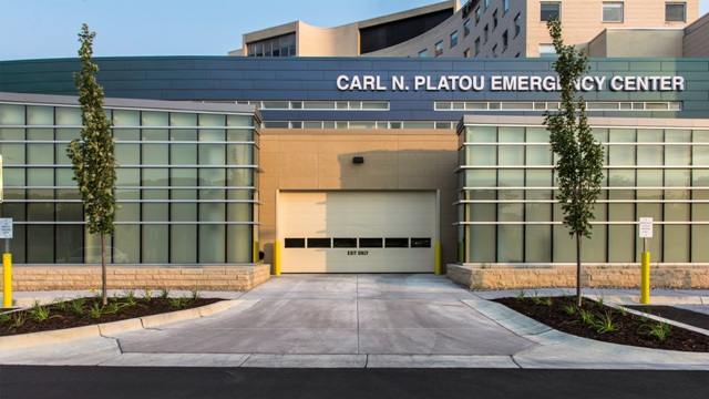 Fairview Southdale Hospital’s emergency care center was originally designed to serve 30,000 patient visits per year; it served about 45,000 in 2012. The $42 million construction project expanded the emergency room so it can serve more than 70,000 patient visits per year. The facility houses 42 patient rooms, which are twice the size of the former patient rooms. Carl N. Platou, the emergency center’s namesake, was the hospital’s president who led its development in 1965.