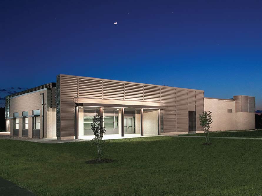 In 2012, the South Carolina National Guard combined and relocated three existing maintenance units into one new location in Florence, S.C. A vacant field was transformed into a cutting-edge maintenance facility campus, which is home to a 13,800-squarefoot field maintenance shop, wash building, diesel fueling station and loading dock. The facilities provide maintenance services for vehicles including Humvees (High Mobility Multipurpose Wheeled Vehicle), HEMTTs (Heavy Expanded Mobility Tactical Truck) and construction equipment.