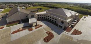 Mid-West Steel Building Co. supplied primary and secondary framing, 24-gauge BattenLok HS and Double-Lok roof panels for the 51,000-square-foot addition to Friendship Baptist Church, completed in 2013. There were many design challenges; the structure was skewed 69 degrees to the main entry structure and the corner column at the attachment had to end and be supported above the mezzanine ceiling. The project consisted of seven areas: a sanctuary, classroom building, north entry, main gathering area, corridor, entrance tower and drive-through canopy.