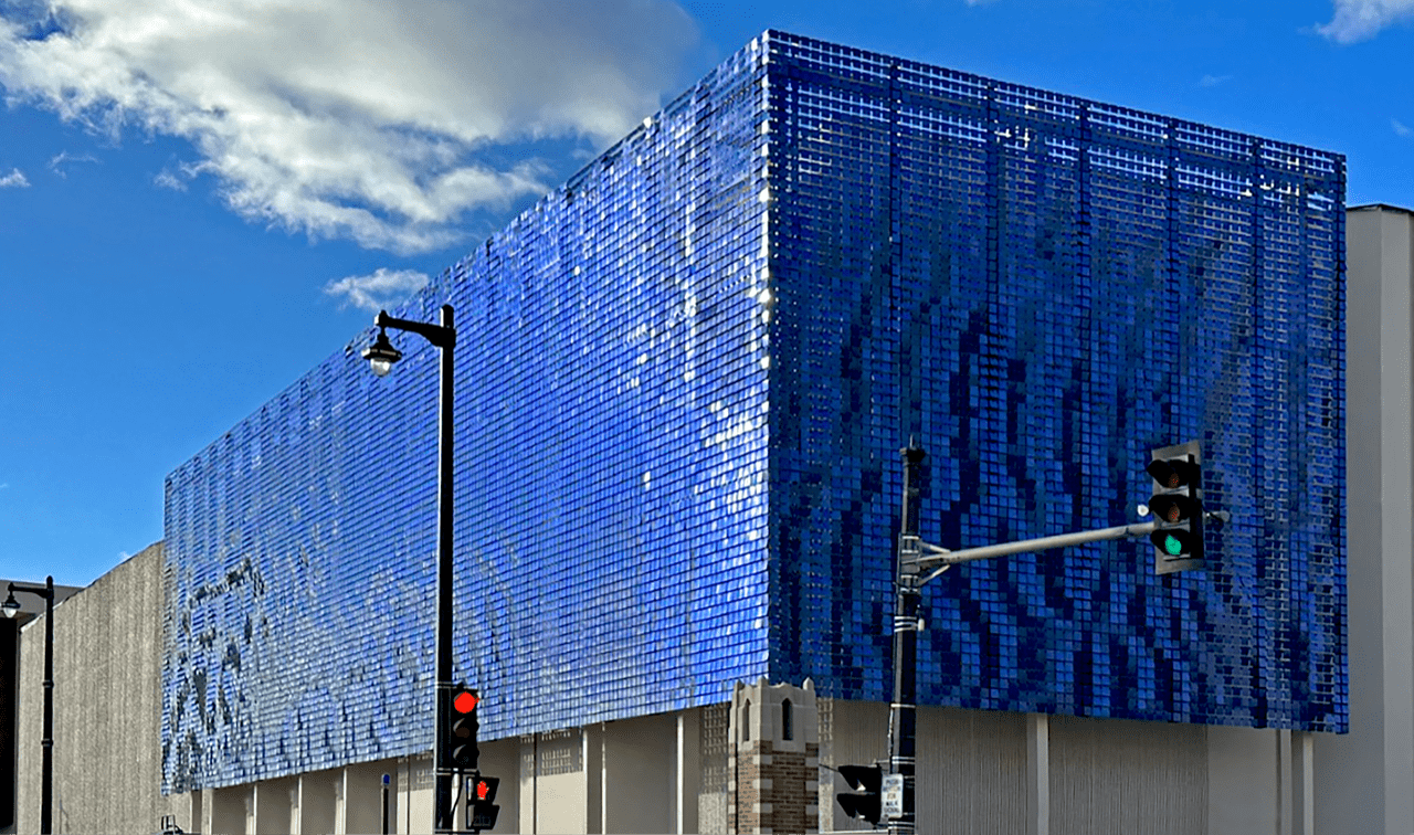 EXTECH fabricated the feature wall from 152 mm x 152 mm (6 x 6 in.) aluminum kinetic elements, spaced 25 mm (1 in.) apart to optimize movement and visual effect. Each flapper is coated in a calming blue Kynar finish, chosen to evoke the shimmering surface of nearby Lake Michigan. Pre-assembled into panels measuring approximately 1.78 m (5.83 ft) wide by 3.35 m (11 ft) tall, the system was installed in three vertical tiers to form a seamless animated surface. The kinetic movement of the wall creates an ever-changing mosaic of light and texture, reflecting wind patterns and the surrounding environment.