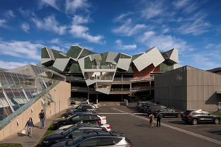 The Pterodactyl building was constructed on top of a four-level parking garage that was built in 1998. The structure was designed with steel columns extended above the top floor plate in anticipation of a future building. The design premise required removal of portions of the original buildings to establish new building identities, allow space for landscaping, and accommodate pedestrian and automobile circulation.