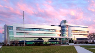 Ron Wiendl, AIA, design director at Leo A Daly, says the metal panel exterior envelope design was intended to reflect Embry-Riddle Aeronautical University’s aviation- and science-based culture. “The form of the architecture is based on the concept of the study of motion and reflects how the air and water forces being studied inside the building curve and bend around the building’s solid surfaces,” he says.