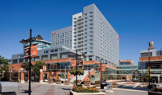 The Hilton Baltimore lies in the inner harbor area, a prime business, historic and cultural district in downtown Baltimore. The hotel’s location is adjacent to the Baltimore Convention Center with direct covered access via pedestrian sky bridge. The 24-story hotel was constructed to bring additional tourism to the area.